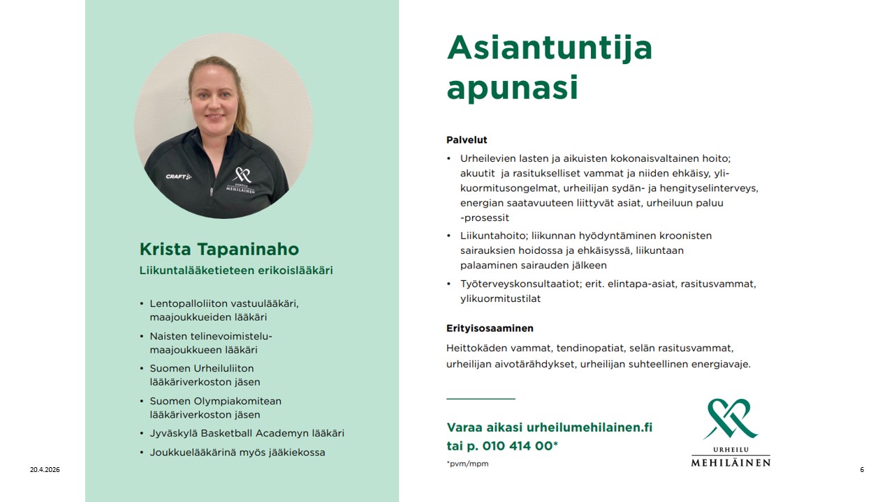 Urheilu Mehiläisen palvelut tarjoaa Mehiläinen Lahti