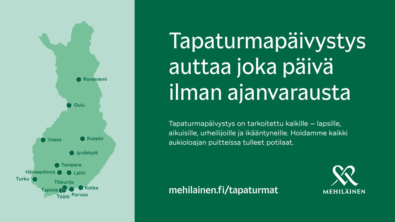 • Mehiläisen keskitetty ajanvaraus: puh. 010 414 00 tai verkossa